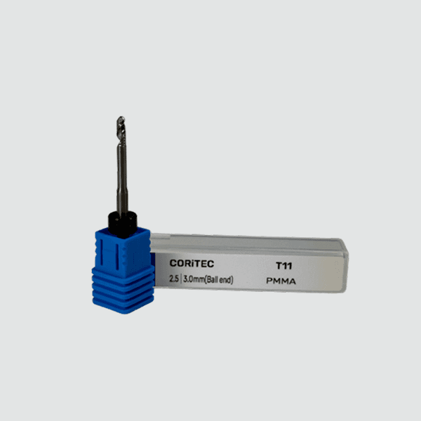 Аналог фрезы T11, radius milling tool (single blade, slide coated) - Фреза от CADCAM-SERVICE, предназначенная для фрезеровки заготовок из PMMA/Wax/PEEK на станках Coritec one/one+, 150i, 250i Loader, 450 (цанга 3 мм). Характеристики фрезы: Диаметр рабочей поверхности (d1): 2.5 мм Диаметр цанги (d2): 3.0 мм Рабочая длина (l): 20.0 мм