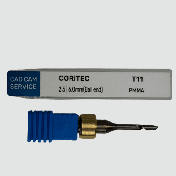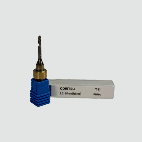 Аналог фрезы T11, radius milling tool (single blade, slide coated) - Фреза от CADCAM-SERVICE, предназначенная для фрезеровки заготовок из PMMA/Wax/PEEK на станках Coritec 350i, 350iPRO, 350iPRO+, 450 (цанга 6 мм), 550, 650i. Характеристики фрезы: Диаметр рабочей поверхности (d1): 2.5 мм Диаметр цанги (d2): 6.0 мм Рабочая длина (l): 20.0 мм